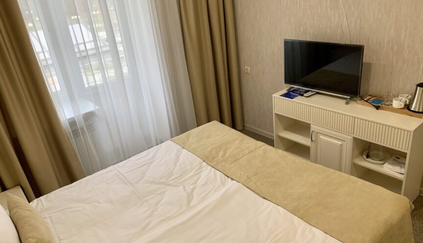 Стандартный однокомнатный номер площадью 16 квадратных метров. Номер подходит для двух основных мест. Есть возможность размещения дополнительных мест для одного человека до 12 лет. В номере есть мебель: вешалка, зеркало, кровать (двуспальная или две полутороспальные), прикроватные тумбочки, стол, стул и шкаф. Также в номере установлено оборудование: кондиционер, телевизор, холодильник, чайный набор посуды и электрочайник. В номере есть санузел с душевой кабиной, тапочки, туалетные принадлежности, фен и халат.